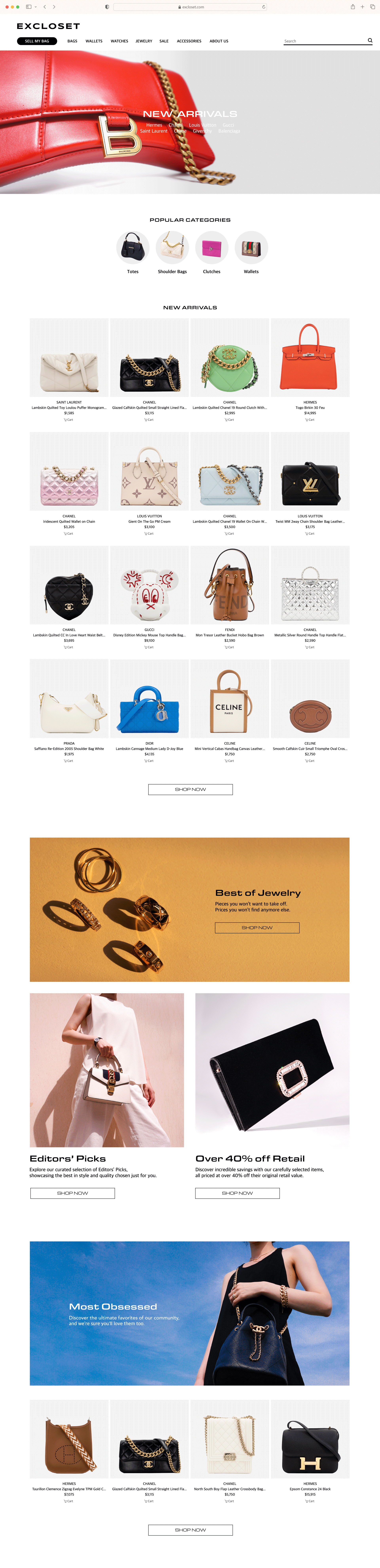 EXCLOSET is an online marketplace for users to buy and sell luxury goods that are authenticated by experts. As a brand director, I directed the rebranding design project of this startup company to give consumers who purchase luxury goods the image of a reliable second-hand luxury market. This encompassed redesigning the logo, website design, the social media content, packaging, photography, brochures, etc.